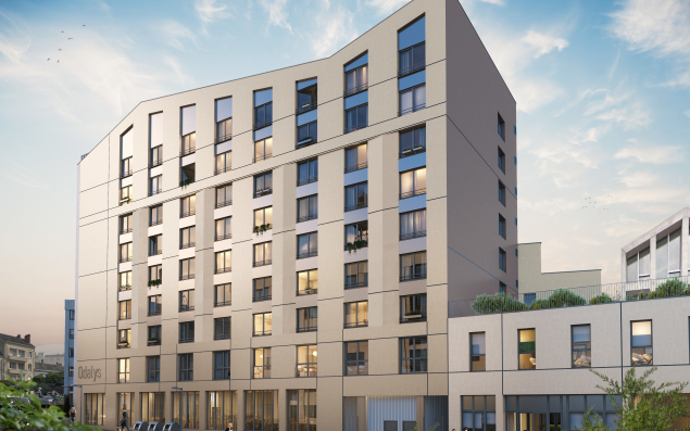 Skyline, c’est le nom de l’immeuble imaginé par l’architecte angevin Rolland & Associés pour le compte de Bouygues Immobilier, qui achèvera sa construction au premier semestre 2023. Ce programme de huit étages à l’identité singulière accueillera une résidence de tourisme d’affaires exploitée par Odalys City. Outre les 123 studios meublés et équipés, les hôtes pourront profiter d’un espace de coworking, de services et de lieux pour se ressourcer (patio central végétalisé, terrasse solarium, etc.).